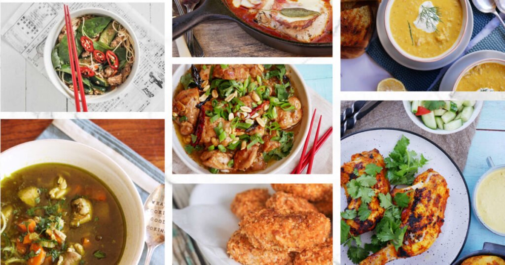 Cook chicken pieces and mix with sautéed vegetables like bell peppers, spinach, and mushrooms. Serve in a bowl with a poached egg on top for a filling and balanced meal.